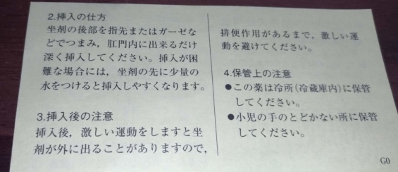 坐薬なんて、入れ慣れてないから、トイレで前から後ろからアプローチに苦労する